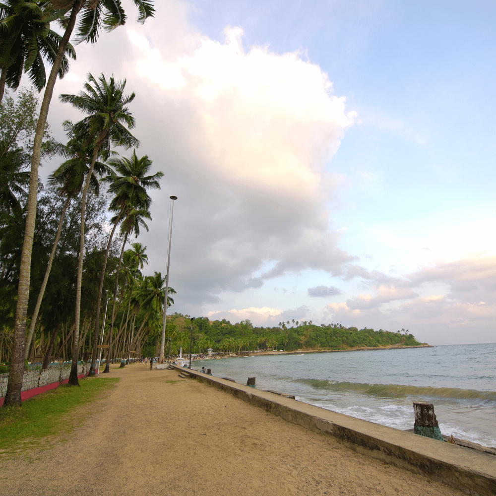Port Blair is also known for its beautiful beaches, such as Corbyn's Cove Beach and Wandoor Beach. Corbyn's Cove Beach is a popular spot for swimming and sunbathing, while Wandoor Beach is known for its clear blue waters and vibrant coral reefs, making it an ideal spot for snorkeling and diving.