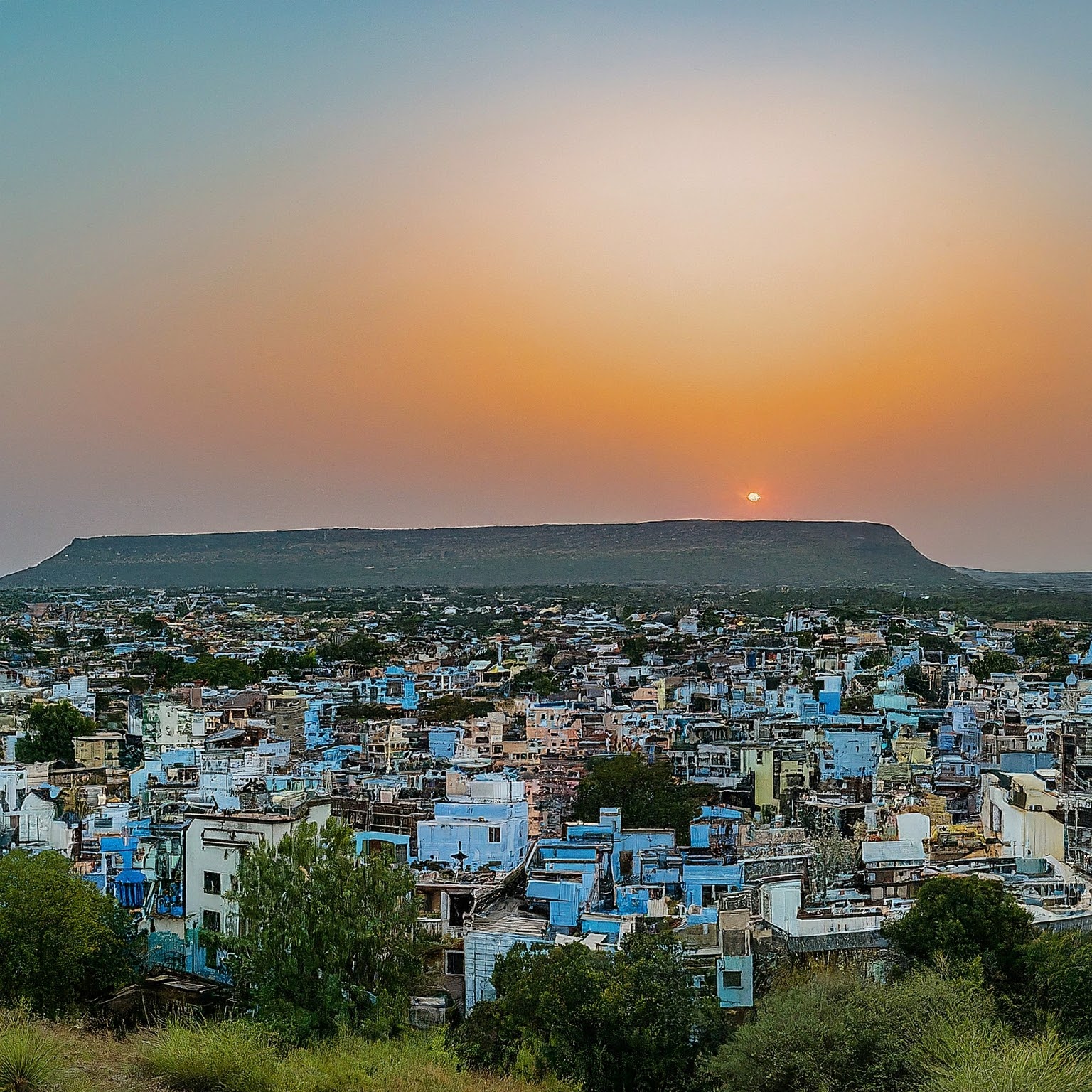 [Closing shot of the sun setting over the picturesque landscape of Shahdol]