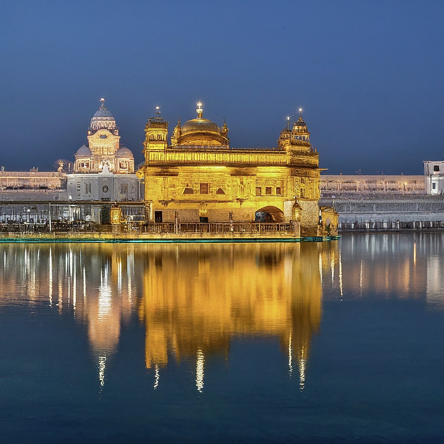 The Golden Temple, also known as Sri Harmandir Sahib, is a sacred Sikh gurdwara located in Amritsar, India. The temple is known for its stunning golden architecture, shimmering in the sunlight and reflecting in the surrounding pool of water. It is the holiest shrine in Sikhism and attracts millions of visitors from around the world each year. The temple complex also houses the Akal Takht, the highest seat of authority in Sikhism, and a langar (community kitchen) that serves free meals to all visitors regardless of religion or background. The Golden Temple is a symbol of peace, unity, and spirituality.