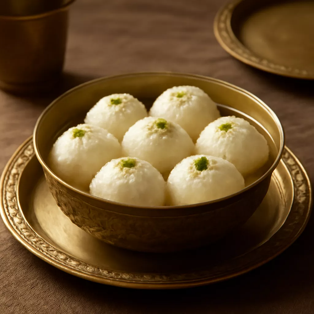Soft and spongy cheese balls soaked in sugar syrup, a beloved sweet treat that is enjoyed during festivals and special occasions.